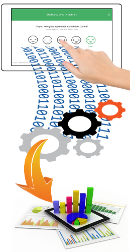 Sự hài lòng khách hàng thông qua máy tính bảng đặt tại chổ quầy giao dịch.